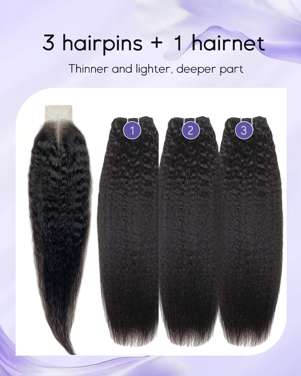 eullair Kinky Straight Bundles with 2x6 Closure - 6 Inch Deep Side Parting Kim K Style Natural Hairline