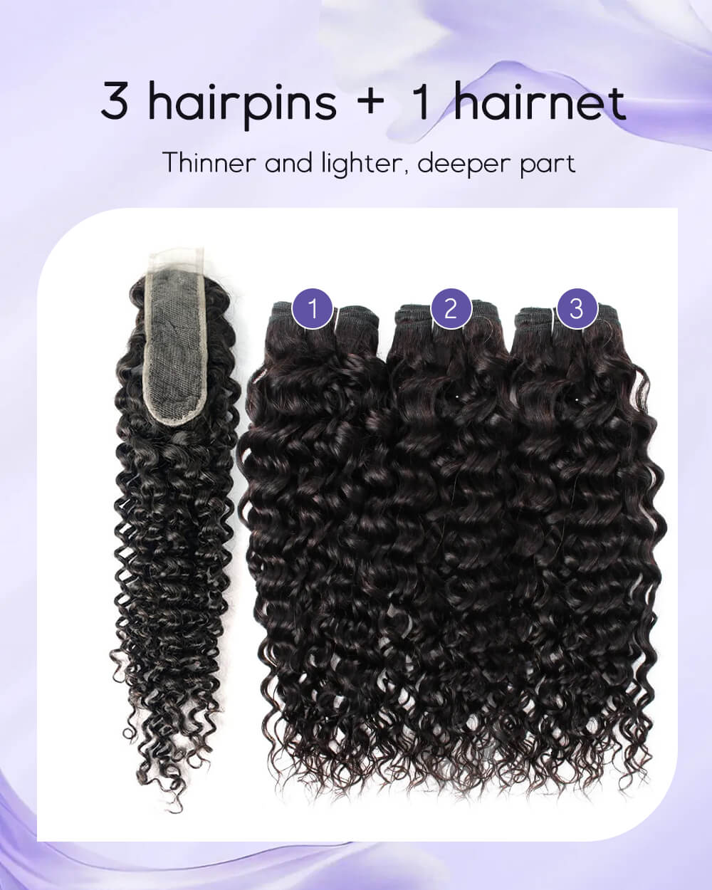 eullair Water Wave Bundles with 2x6 Closure - Pre-plucked Natural Hairline Invisible Swiss Lace Human Hair
