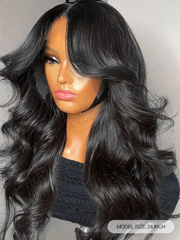 eullair Hairstylist Inspired Butterfly Layered Cut Loose Body Wave Wig With Curtain Bangs Human Hair Pre Cut Lace Front Wig