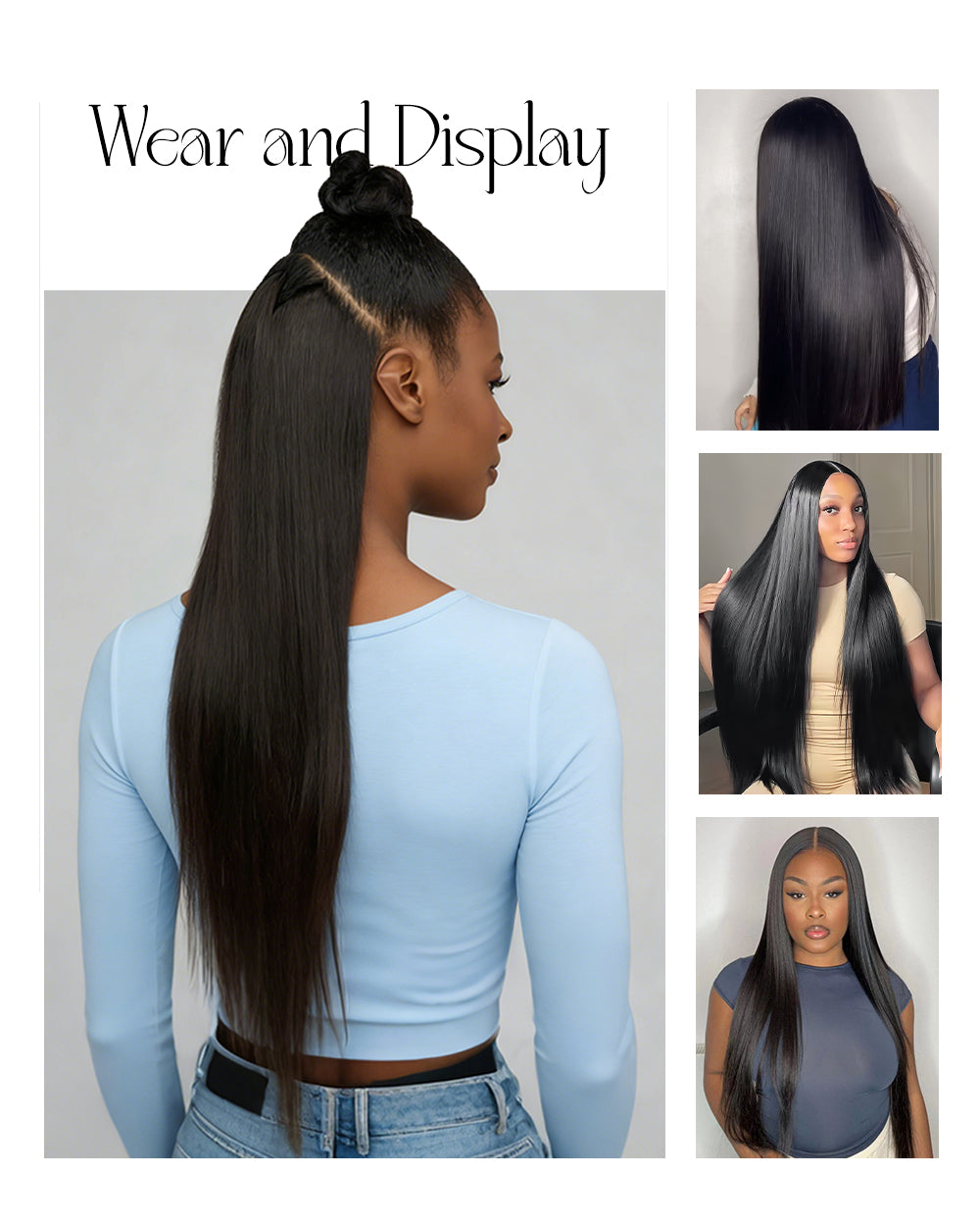 • 100% Virgin Human Hair: Sourced for its integrity, our Silky Straight hair maintains its natural cuticle alignment, ensuring a tangle-free, long-lasting shine that can be heat-styled just like your own hair.