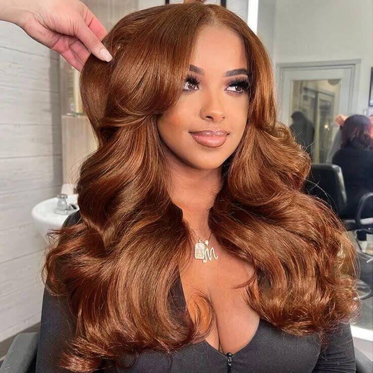 eullair Auburn Ginger Lace Front Wig 13x4 Long Wavy Human Hair Copper Red Glueless Pre-Plucked Natural Hairline