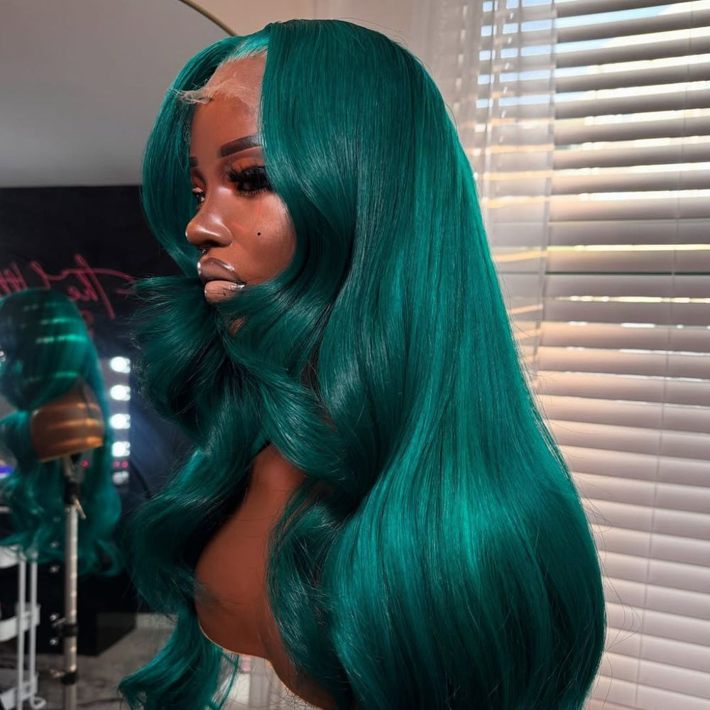 eullair Multi Colored Lace Front Wig Body Wave Human Hair Blue With Orange Green Highlight Lace Frontal Wigs For Women Pre Plucked 180%