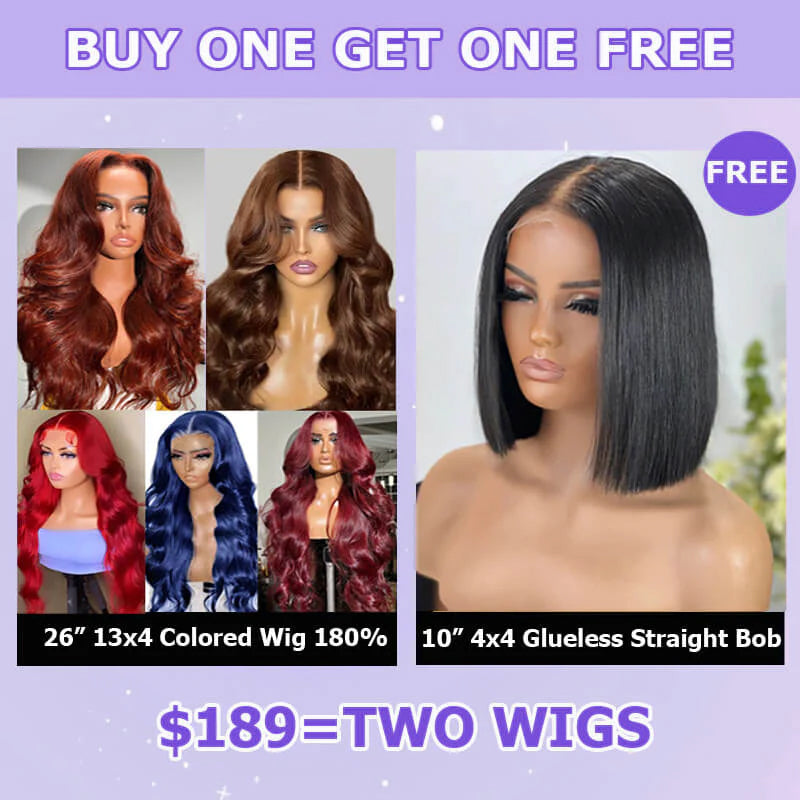 Flash Sale $189=2 Human Hair Wigs| Buy 26inch Colored Body Wave 13x4 Lace Wig Get a 4x4 Glueless Straight Bob Wig For Free