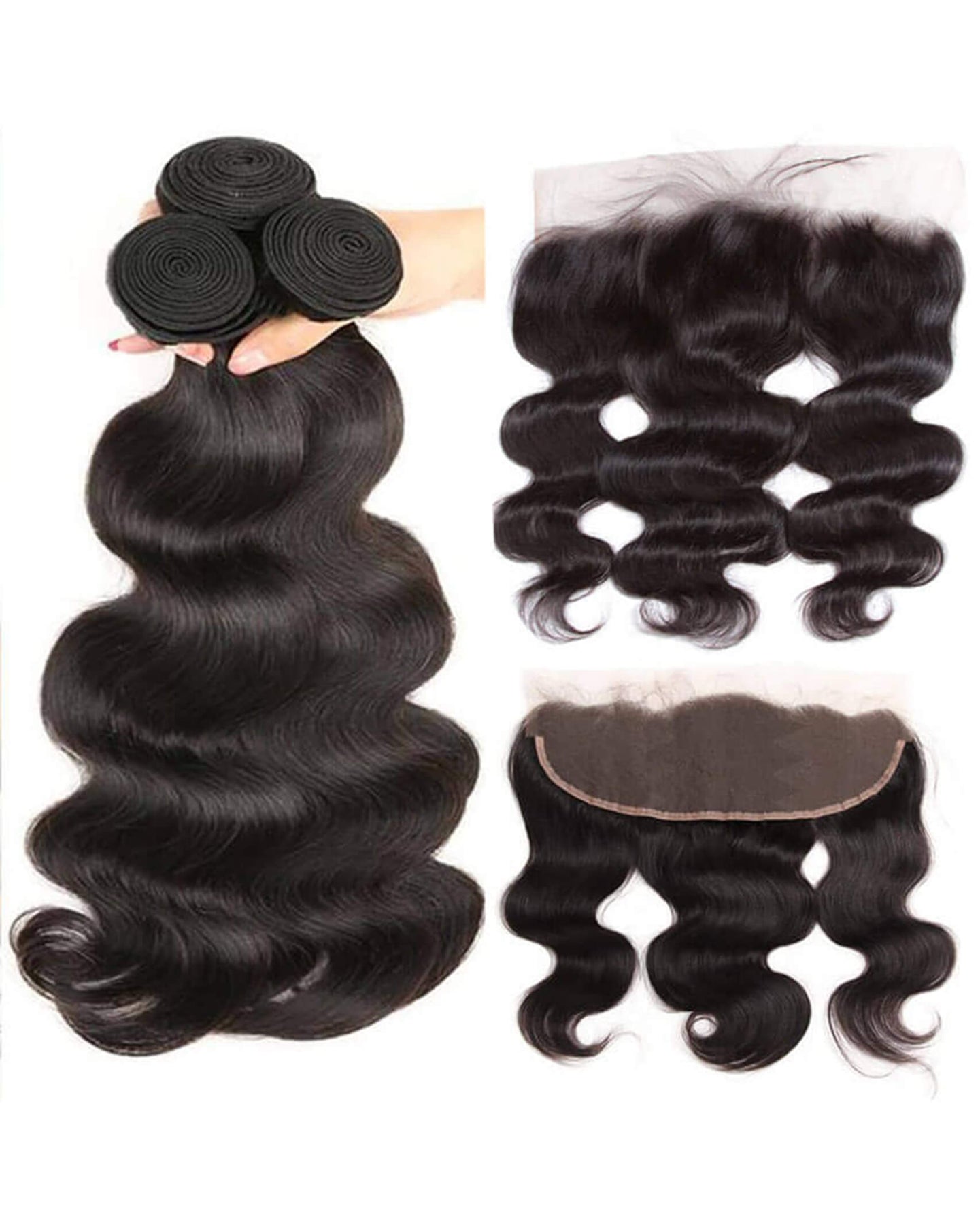 Eullair Body Wave Bundles with Closure & Frontal – 3 Bundles Human Hair Deals with 4x4/ 5x5/ 13x4/ 13x6 Frontal